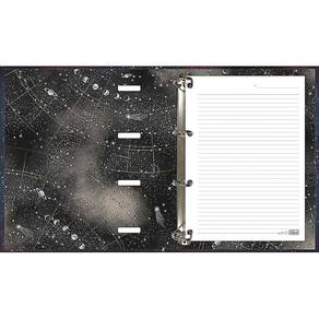 O Caderno Argolado Cartonado Universitário com Elástico Magic tem 80 folhas, adesivos e bolsa plástica. A linha nasceu para atender ao fascínio que milhares de pessoas têm por astros, estrelas, signos e elementos do espaço.