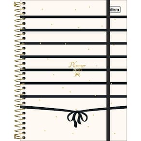 - Capa: dura. - Capa acabamento: com detalhe metalizado. - Conteúdo: Controle financeiro, Listas, Metas e objetivos e Página para planejamento do futuro. - Cor: diversas. - Espiral: Colorido. - Fechamento: com elástico. - Folhas: para anotações. - Formato: 177mm x 240mm. - Gramatura: 63 g/m². - Material: Capa Dura Com Acabamento Metalizado. - Número de folhas: 80 folhas. - Parte interna da capa decorada: Sim. - Produto certificado: FSC. - Visão: anual, mensal e semanal.