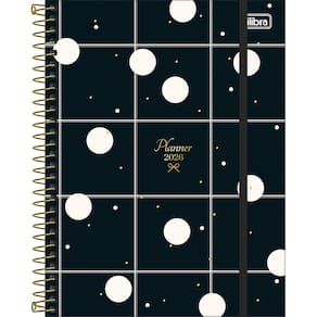 - Capa: dura. - Capa acabamento: com detalhe metalizado. - Conteúdo: Controle financeiro, Listas, Metas e objetivos e Página para planejamento do futuro. - Cor: diversas. - Espiral: Colorido. - Fechamento: com elástico. - Folhas: para anotações. - Formato: 177mm x 240mm. - Gramatura: 63 g/m². - Material: Capa Dura Com Acabamento Metalizado. - Número de folhas: 80 folhas. - Parte interna da capa decorada: Sim. - Produto certificado: FSC. - Visão: anual, mensal e semanal.