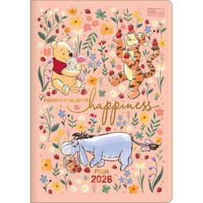 Se você busca um produto inspirado nas principais tendências de moda para se organizar, o planner grampeado Pooh é a escolha perfeita. O produto tem tamanho 17,8 x 25,4 cm, capa flexível com detalhes metalizados e folhas com visões anual e mensal. Este planner 2026, que possui 20 folhas em papel creme, com gramatura de 90 g/m², é escolha ideal para anotações objetivas de tarefas e compromissos.