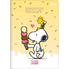 Se você busca um produto inspirado no beagle mais querido dos desenhos animados, o planner grampeado Snoopy da Tilibra é a escolha perfeita. O produto tem tamanho 17,8 x 25,4 cm, capa flexível com detalhes metalizados e folhas com visões anual e mensal. Este planner 2026, que possui 20 folhas em papel creme, com gramatura de 90 g/m², é escolha ideal para anotações objetivas.