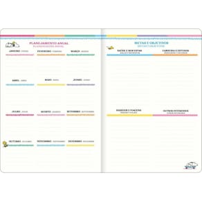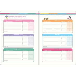 - Capa: flexível. - Capa acabamento: com detalhe metalizado. - Conteúdo: Controle financeiro e Dicas e informações relacionadas à temática da marca. - Cor: diversas. - Folhas: em papel creme. - Formato: 178mm x 254mm. - Gramatura: 90 g/m². - Material: Papel. - Número de folhas: 20 folhas. - Produto certificado: FSC. - Visão: anual e mensal.