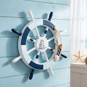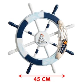 Este Timão/Leme Marinheiro de 45cm é a peça ideal para decorar casas de praia, áreas externas, varandas, salas, restaurantes temáticos e ambientes que pedem um toque marítimo