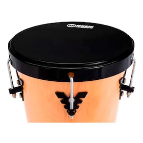 Timba 215NP da PHX é um instrumento de formato cônico de madeira envernizada, pele de napa e 6 parafusos para afinação.