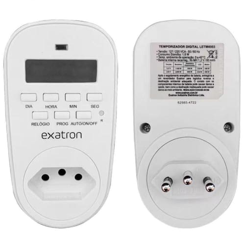 - Programações: 40 programações, 20 ON e 20 OFF, - Configuração mínima de 1 segundo.