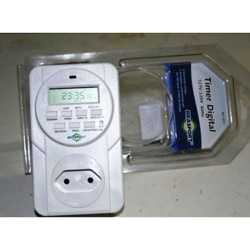 Novo padrão de tomada e plugue - Este aparelho é bivolt, operando em 127V ou 220V automaticamente - Utilize-o com utensílios em 127V e 1.270W ou em 220V e 2.200W de potência - Economize energia elétrica - Liga e desliga automaticamente seus eletrodomésticos na hora programada. - Pode ser utilizado em iluminação de aquários, jardins, fachadas luminosas, abajures, TVs, ventiladores, ares-condicionados, sistemas elétricos de piscinas, entre outras aplicações. - Programação simples, rápida e fácil. - 16 programações liga e desliga para o mesmo dia. - 9 opções de calendário: diariamente, 1 vez por semana, apenas dias úteis, apenas finais de semana, segunda à sábado, dias alternados e 3 dias consecutivos. Ean: 7898094337712