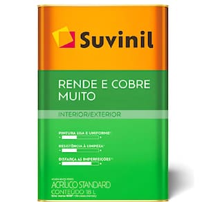 A linha Rende & Cobre Muito da Suvinil foi desenvolvida para entregar máximo poder de cobertura e facilidade de aplicação. Suas características técnicas foram pensadas para atender tanto o usuário final quanto o profissional, assegurando um resultado uniforme e duradouro.Tipo de Produto: Tinta Acrílica Cor: Elefante (código específico da Suvinil).Embalagem: Lata de 18 Litros.Rendimento: Aproximadamente 400 m² por demão (o rendimento prático varia de acordo com a porosidade e regularidade da superfície).Tempo de Secagem: Ao toque: 30 minutos. Entre demãos: 2 horas. Secagem completa: 4 horas.Poder de Cobertura: Extremamente alto, característica principal da linha, permitindo cobrir cores escuras com mais facilidade e uniformidade.Lavabilidade: Média a alta, permitindo a limpeza das paredes com um pano úmido sem danificar a película de tinta.Cheiro: Baixo odor.Aplicação: Rolo de lã de carneiro, pincel ou trincha.Diluição: Recomenda-se diluir até 50% do volume de tinta com água potável, conforme a necessidade e a técnica de aplicação.