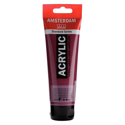 Nossos acrílicos são habilmente feitos com base em uma emulsão 100% acrílica e pigmentos de alta qualidade. Eles são praticamente inodoros e mesmo em camadas grossas, a película de tinta acetinada permanece flexível e evita rachaduras. A viscosidade média cremosa mantém as pinceladas e texturas, mas também pode ser usada para facilitar a cobertura suave. Caput Mortuum Violet (344) é uma cor semiopaca com uma excelente resistência à luz (+++).