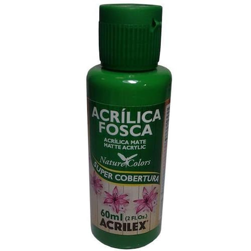 Artesanato VERDE GRAMA Fosca Tinta Acrílica 60 ml Acrilex DESCRIÇÃO: Tinta acrílica fosca com alta cobertura. Secagem rápida, pode ser lixada. Aplicações: Ideal para trabalhos de artesanato. Pode ser aplicada em diversos materiais, como: madeira, Resina, papel,cerâmica, isopor, gesso, couro, cortiça, vidro e plástico