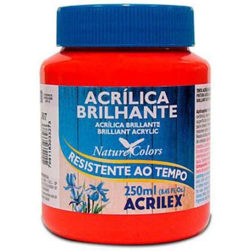 Tinta acrílica brilhante Vermelho Fogo 250ml - 507 - AcrilexTinta indicada para pinturas artesanais sobre MDF, madeira, cerâmica e pedra.Detalhes: - Resistente ao tempo sol e chuva .- Acabamento brilhante.- Pronta para uso.Modo de usar:- Pode ser aplicada com pincel, rolinho ou esponja.