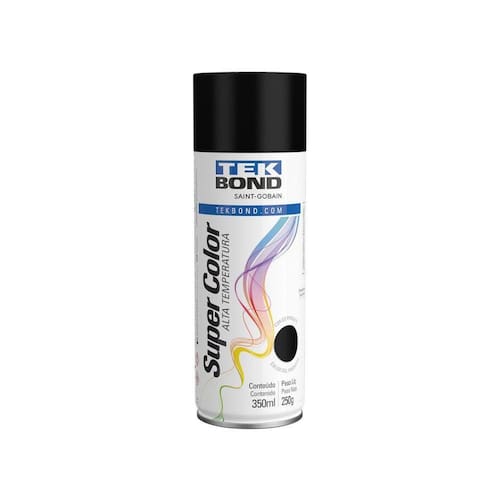 Tinta Aerossol Alta Temperatura 350ml - Tekbond Preto Fosco Tinta Aerossol Alta Temperatura 350ML - Tekbond Preto Fosco - Características Gerais do Produto: - Marca: Tekbond - Peso Liquido: 250g - Conteúdo: 350ml - Aplicação: Uso geral, indicada para alta temperatura - Composição: Resina de petróleo, resina acrílica, pigmentos orgânicos e inorgânicos, pigmentos metálicos, solventes aromáticos e cetônicos, propelente butano/propano - Largura: 6,5cm - Comprimento: 6,5cm - Altura: 20cm - Garantia: 3 Meses Acompanha o produto: - 01 - Tinta Aerossol Alta Temperatura 350ML - Tekbond Garantia: - 3 Meses
