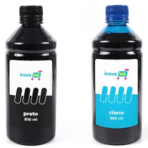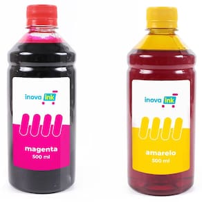 Kit com 4 tintas, cada frasco possui 500 ml, nas cores magenta, yellow, cyan e black.