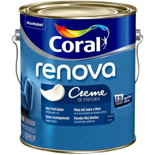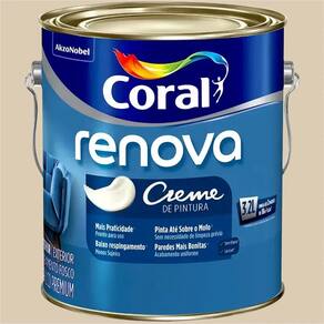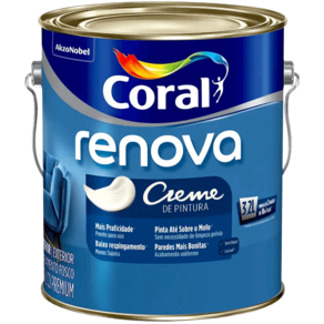 Descrição: O creme de pintura Coral Renova já vem pronto para o uso, podendo ser aplicado sem precisar ser diluído, ele se espalha com facilidade pelas paredes e ainda traz uma excelente cobertura e um acabamento uniforme. E caso você esteja pintando uma parede com mofo, Renova é a solução perfeita, já que pinta até sobre mofo sem precisar de uma limpeza prévia. E esta nova solução de pintura faz tudo isso com mínimos respingos. Desde as primeiras pinceladas você percebe que irá atingir os resultados que planejou. Coral Renova é um creme de pintura que espalha facilmente pelas paredes resultando em um acabamento uniforme.