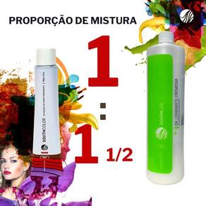 - A coloração creme Southcolor é do tipo 1.1/2, ou seja, para uma medida de coloração, adicione uma medida e meia de água oxigenada cremosa, na volumagem adequada ao resultado desejado.