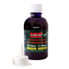 Tinta para marcador de quadro branco Cor: Violeta / roxoTinta especial para pincéis de quadro branco de todas as marcas e modelos - não mancha os quadros;- fácil remoção;- cores fortes e vivas para melhor visualização;- frasco com bico aplicador para facilitar a injeção nos refis e pincéis.Valor referente a 250 ml violeta / roxoTemos também nas cores: azul, vermelho, verde, preto, violeta e laranjaMarca: carinon mix