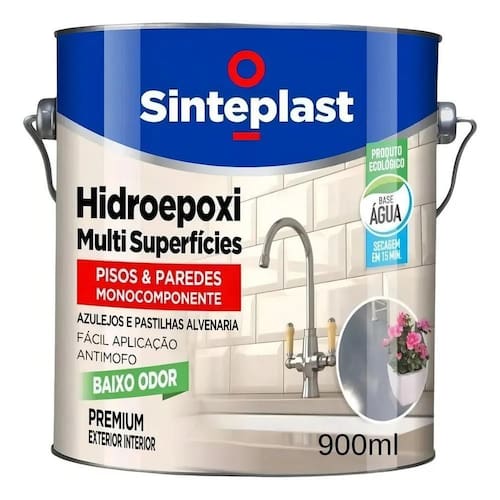 Tinta Epóxi Base Água Brilhante Renova Banheiros 900ml Cores Hidroepoxi Sinteplast é uma tinta epóxi base água monocomponente de secagem rápida, com excelente resistência, durabilidade e aderência. Adequada para uso interno e externo, é ideal para renovação de banheiros, cozinhas, lavanderias e garagens. Aplicável em pisos de concreto, madeiras previamente preparadas, alumínio, aço galvanizado, vidros, metais, azulejos e pastilhas. Possui propriedade antiderrapante e está disponível nos acabamentos brilhante e acetinado. ESPECIFICAÇÃO TÉCNICA: - Contém 900 ML - Fácil Aplicação - Antimofo - Baixo Odor - Secagem Rápida DILUIÇÃO: - Rolo/Pincel: até 20% com água limpa na primeira demão e nas subsequentes 20% - Ferramenta de aplicação: 35% para todas as demãos QUANTIDADE DE DEMÃOS: - De 2 a 3 demãos RENDIMENTO: - Até 13m por demão SECAGEM: - 1 hora ao toque, 4 horas entre demãos, cura total em 7 dias OBS: Evitar contato com água nos primeiros 7 dias para prevenir riscos de desplacamento ou remoção da tinta. Para aplicação em pisos ou revestimentos com brilho, é necessário lixar o local para remoção do brilho antes da aplicação. Marca: Não Informado Ean: 79010471503931
