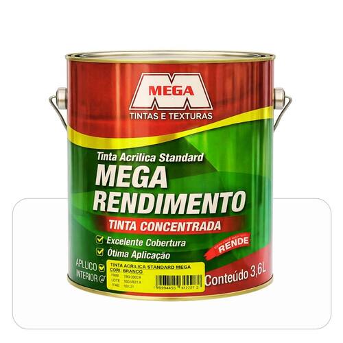 ACABAMENTOFosco INDICACAO DE USOExterno e Interno CARACTERISTICASOtima resistencia a intempériesOtimo poder de coberturaAlto rendimentoDisponivel em 14 cores Ready MixPaleta de cores em tons pasteis MEGA Colormix DILUICAODiluir em agua limpaAte 30 por cento em agua potavel RENDIMENTOAte 170 m² por lata de 18 litrosAte 42 m² por galao de 3,6 litros DEMAOSDuas ou tres demaosIntervalo de 4 horas entre as demaos