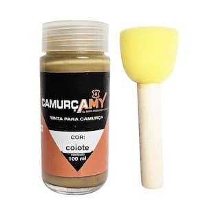 Tinta para camurça coiote 100ml e pincel batedor General couros 1 tinta para camurça cor coiote 1 pincel aplicador de tinta de camurça ---- Tamanho da tinta 100ml Secagem rápida. ----- Modo de usar: Limpe o local com limpeza a seco Cubra as partes que não deseja pintar para não manchar com fita crepe para couro Com o pincel aplique suavemente para não escorrer. Espere secar 30 minutos para cada d'mão. Secagem completa 12 horas. Para reviver os pêlos do camurça escove com a escova para camurça. para manter a qualidade do camurça aplique o renovador de camurça periodicamente. A tinta na cor branca não serve para mudar a cor do camurça tipo preto para branco não vai ficar legal.