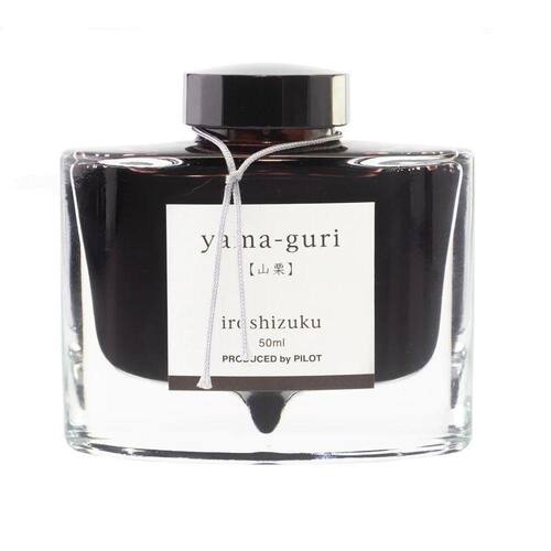 Iroshizuku é uma linha de tintas luxuosas criada pela Pilot para refletir o cenário de belezas naturais do Japão. Os maravilhosos tons vão preencher a sua caneta tinteiro com vividez e elegância. Cada frasco de vidro é minuciosamente criado e contém uma inovadora saliência no fundo do recipiente para que até a última gota de tinta seja aproveitada. Frascos de 50mL.Cor: Yama Guri marrom escuro Origem: Japão