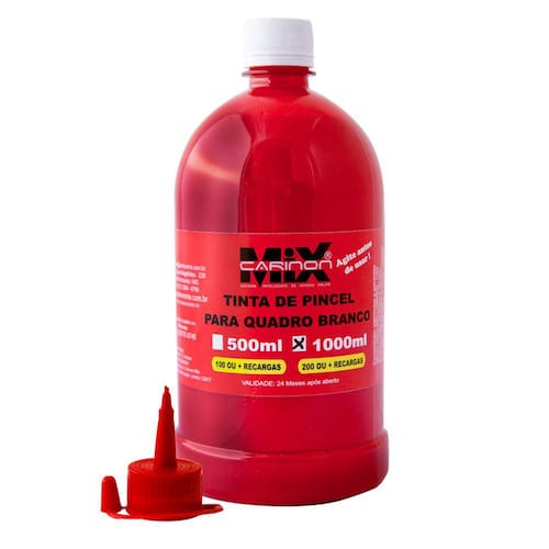 Tinta De Pincel Para Quadro Branco, Reabastece Todas As Marcas E Modelos. Melhor Custo Beneficio.Marca: Carinon MixO Produto: - Não Mancha Os Quadros,- Fácil Remoção,- Cores Fortes E Vivas Para Melhor Visualização,- Frasco Com Bico Aplicador Para Facilitar A Injeção Nos Refis E Pincéis,- 200 Recargas.Ideal Para: Uso Comercial, Escolar. Para Pincel Marcador De Quadro Branco.Dimensões: Compr. 160 Mm Larg. 95 Mm Diâm. 290 Mm.Embalagem: 1 Unidade De 1 LitroCor: Vermelho Marca: Tinta De Pincel Quadro Branco