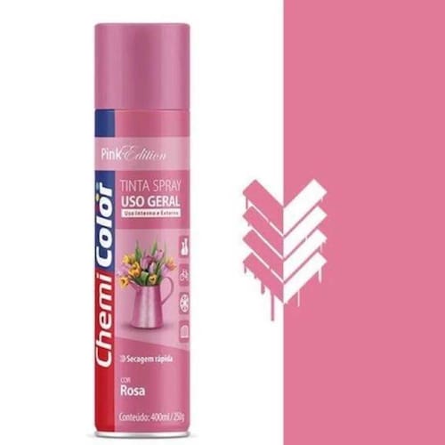 Experimente a Tinta Spray Brilhante Rosa 400ml da Chemicolor e transforme suas superfícies com um toque de cor e brilho incomparáveis.