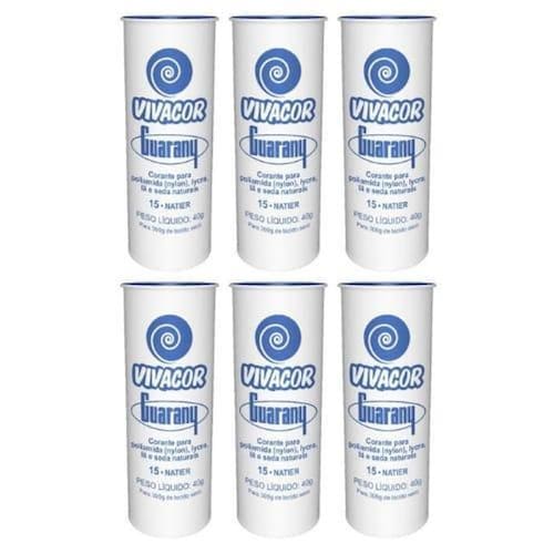 Lembre-se que um tubete é suficiente para 300 gramas de tecido, ou seja, divida o peso da roupa em gramas por 300 e obtenha quantos tubetes serão necessários. Exemplo: 900/300 = 3 tubetes Biquini - 100g - 1/3 Calça Adulto - 700g - 2 e 1/3 Calça Jeans - 800g - 2 e 2/3 Calça Jeans Infantil - 450g - 1 e 1/2 Camiseta 1/2 Manga - 100g - 1/3 Camiseta Regata - 80g - 1/4 Fronha - 180g - 2/3 Lençol Casal - 500g - 1 e 2/3 Lençol Solteiro - 300g - 1 Maiô - 200g - 2/3 Short - 100g - 1/3 Sunga - 50g - 1/6 Toalha Banho - 800g - 2 e 2/3 Toalha Rosto - 180g -2/3 Especial para tingir tecidos como poliamida Nylon , lycra, lã e seda naturais. Instruções de uso: 1 Dissolva o Vivacor em água fervente. 2 Misture o Vivacor dissolvido em um recipiente com água quente o suficiente para cobrir a peça a ser tingida. 3 Lave a peça e, ainda úmida, mergulhe no banho de tingimento, mexendo sempre por 30 minutos. Mantenha sob fervura. 4 Retire a peça do banho e enxágue bem em água corrente. 5 Coloque no Fixacor por 30 minutos, seguindo as instruçõesda embalagem. Indicação: Recuperação de roupas, tie dye, customização, artesanato, decoração, etc. Peso líquido: 40g Quantidade de tecido seco: 300g Itens do pacote: 06 Vivacor 40g Azul Natier;