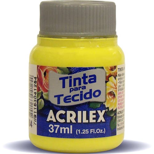 Tinta Tecido Fosca 037Ml Amarelo Limão Tinta para Tecido Acrilex Fosca 37ml. Tintas à base de resina acrílica, não tóxicas e solúveis em água. Prontas para uso. São resistentes a lavagens e todas as cores são miscíveis entre si. Sua aplicação pode ser feita com pincel ou esponja, e têm fixação a frio. São tintas desenvolvidas para tecidos de fibras naturais de algodão, não devendo ser utilizadas sobre tecidos sintéticos ou engomados. Lavar o tecido antes da pintura, para retirar os resíduos de goma. Após a pintura, aguarde 72 horas para lavagem. Para diluição, use o Diluente para Tinta Tecidos, indicado para diluir, retardar a secagem, fazer Técnicas de matizados e sombreados, mantendo a resistência às lavagens. Cor: Amarelo Limão Marca: Não Informado Ean: 7891153011042