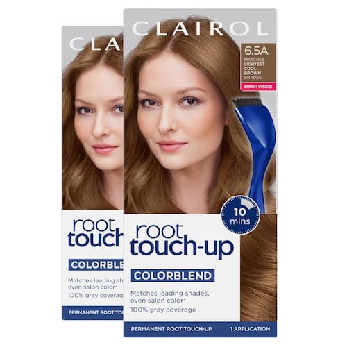 Tintura de cabelo permanente Clairol Root Touch-Up da Nice'n Easy, 6,5 A mais clara cor de cabelo castanho frio (pacote com 2)