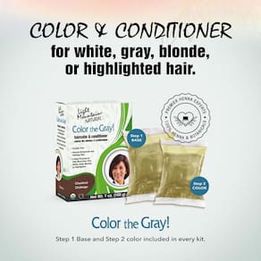- Transforme seu cabelo em duas etapas: o kit de coloração de cabelos grisalhos Light Mountain Naturals em 2 etapas inclui 85 g da base do passo 1 e 113 g do pó de cor Step 2, um folheto de instruções, um boné e um par de luvas.