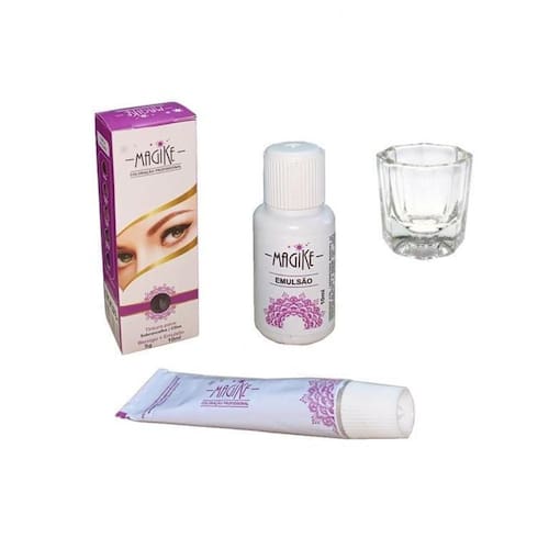 Magike coloracao 5g Uma tintura especifica para sobrancelhas, cilios, barba e bigode. Permitem criar um volume das raizes as pontas e suas sobrancelhas e cilios ficam mais destacadas e o melhor, de forma natural. E ideal para mulheres e homens que ja estao com seus pelinhos brancos, ou para quem esta com os pelinhos claros demais. A tinta e completamente e impermeavel a prova d'agua . Nutre e trata enquanto colore, realca fios claros e brancos. Diferente da henna, magike e utilizado para colorir o fio. - duracao: ate 2 meses - peso: bisnaga 5g e emulsao 10ml O dappen de vidro e utilizado em manipulacao de materiais de uso estetico, de uso para manicures, estetico, odontologico, medico e farmaceutico. Sua composicao a base de vidro permite ser totalmente autoclavavel, garantindo boa resistencia ao produto. - utilizado para manipulacao de po acrilico, monomer, maquiagens, henna e produtos odontologicos. - esterilizavel em autoclave a 137C. - disponivel na cor: transparente. - possui uma cavidade para as manipulacoes 10ml - altura e largura: 3,2 cm - nao acompanha pincel Marca: Não Informado