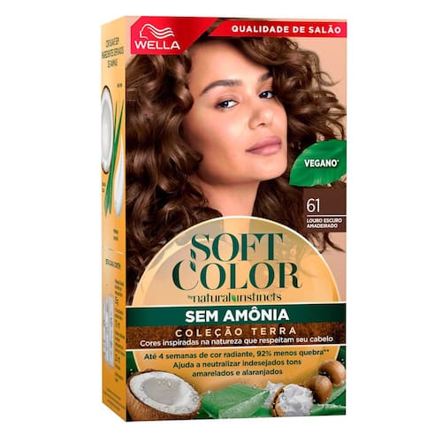 Wella Soft Color - 61 Louro Escuro Amadeirado Transforme seu visual com a Wella Soft Color 61 Louro Escuro Amadeirado, uma coloração que combina qualidade de salão com o carinho que seus cabelos merec