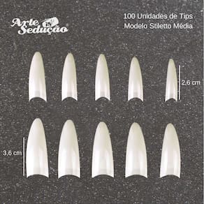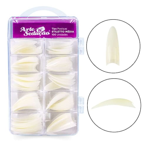 Contém; 01 - Caixinha com 100 Tips Stiletto Média - Numeradas de 0 a 9.