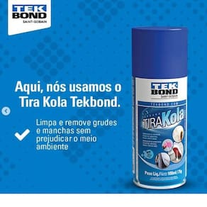 O Tekbond Tira Kola é um produto utilizado para a limpeza e remoção de grudes e manchas, que foi desenvolvido especialmente para auxiliar no seu dia a dia. A base de solventes que não agridem o meio ambiente, o Tira Kola pode ser utilizado em diversas tarefas domésticas, como na remoção de cola de etiquetas, chicletes, piche em lataria de carros, manchas de caneta, giz de cera e maquiagem, manchas diversas em roupas, excesso de tinta em pincéis de pintura entre outras facilitando a sua rotina.