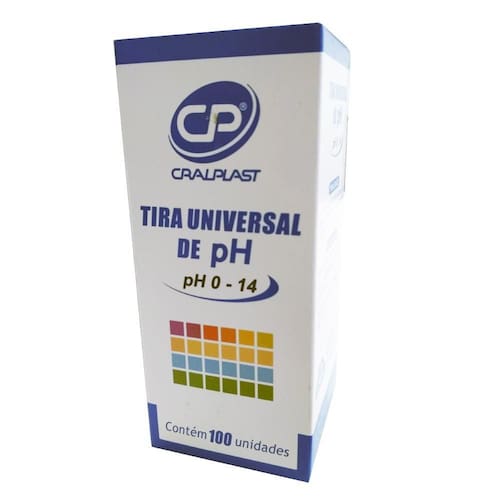 Tira Universal de pH 0-14 A tira universal de pH é utilizada para realizar a leitura do pH de soluções aquosas - Mantenha longe da luz e umidade - Tampe imediatamente o frasco após remover a tira - Não toque nas áreas de testes de tira reagente Ean: 7899935308076