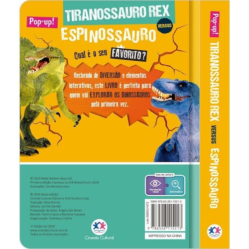Título Do Livro: Tiranossauro rex versus Espinossauro Autor: Ramos, Alice Idioma: Português Editora Do Livro: Ciranda Cultural Ano De Publicação: 2024 Quantidade De Páginas: 10 Altura: 185 mm Largura: 134 mm Peso: 265 g Gênero Do Livro: Infantil Subgêneros Do Livro: Literatura infantil Data De Publicação: 18-12-2024