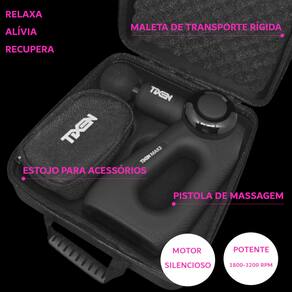 PORTABILIDADE E CONVENIÊNCIA: Leve e compacto, o Tixen Max 3 vem com um estojo de transporte resistente e elegante, facilitando o armazenamento e o transporte seguro de seu massageador e todos os acessórios.
