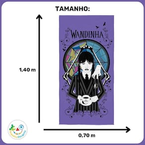 Toalha Aveludada Estampada Wandinha 2 com 1 peca Toalha Aveludada da Wandinha Família Addams Lepper: O Pós-banho mais Divertido e Confortável A toalha aveludada da coleção Wandinha traz em sua estampa o incrível e misterioso universo da icônica personagem. Com estampas vibrantes que retratam as emocionantes aventuras da Wandinha, esta toalha é a escolha perfeita para os fãs da Família Addams. CARACTERÍSTICAS: - Conteúdo: 1 peça - Tamanho: 70 cm x 1,40 m - Marca: Lepper - Tecido: 55% Algodão 45% Poliéster - Gramatura: 280g/m QUALIDADE: O tecido desta toalha apresenta a exclusiva qualidade Lepper da felpa, que não desfia, possui ótima absorção e se torna mais macio a cada lavagem, sem comprometer a intensidade das cores. Proporcione à sua criança um toque suave e aconchegante após o banho, com a de durabilidade e resistência da marca Lepper. INSTRUÇÃO PARA LAVAR: - Pode ser lavado em máquina, com temperatura máxima de 30º. - Lave separadamente de peças coloridas. - Não utilize alvejante cloro ou água sanitária durante a lavagem. - Pode ser secado em secadoras de tambor, em temperatura mínima. - Pode ser passado a ferro em temperatura baixa. Adquira agora a Toalha Aveludada da Wandinha Lepper e proporcione momentos de alegria e conforto Transforme o pós-banho em uma experiência única com a qualidade e diversão que só a Lepper proporciona.