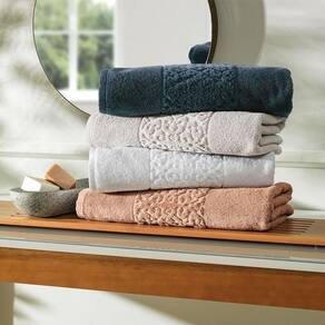 As Toalhas Galleria possuem design clássico, com barra em jacquard formando graciosos arabescos que dão um toque especial para as peças.