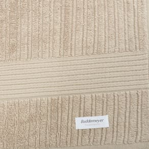 100% algodão fio penteado: maciez, resistência e durabilidade. Design canelado elegante com detalhe de barra delicada. Pré-lavada e pré-encolhida: praticidade e segurança no uso. Acabamento premium Buddemeyer: brilho natural e absorção eficiente.