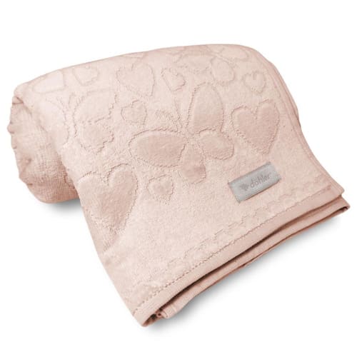 Ddesign elegante em veludo e jacquard conta com desenhos de corações e borboletas em seu corpo, deixando-a delicada e cheia de detalhes que fazem toda a diferença. Além disso, ela é pré-lavada e pré-encolhida, evitando encolhimento após a lavagem.