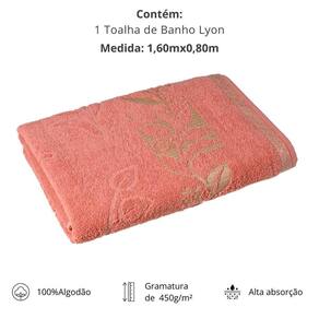 A toalha de banho Lyon da Cavhome é inspirada na sofisticação francesa e criada para proporcionar uma experiência única. Com tamanho generoso e confeccionada em 100% algodão de fibras longas e fio de dupla torção, garante toque aveludado e absorção excepcional. Seu barrado em poliéster metalizado, nos tons cobre e dourado, valoriza o delicado desenho floral em jacquard, um verdadeiro trabalho artístico. Intensamente perfumada e finalizada com amaciante hidrófilo, envolve o corpo com suavidade e conforto após o banho, transformando esse momento em puro prazer.