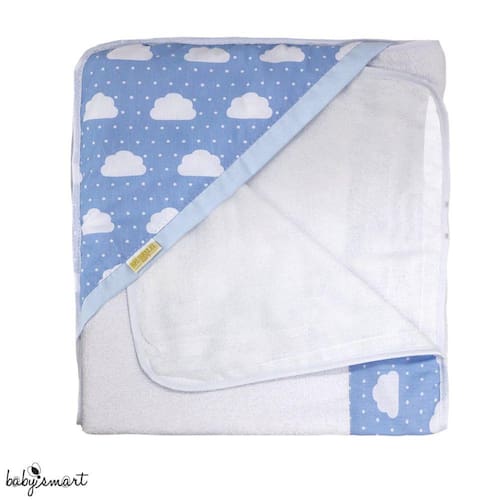 Toalha com capuz 100% algodão. A parte interna é forrada com fralda que protege a pele delicada do bebê.