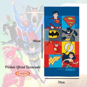 A toalha aveludada estampada da coleção Liga da Justiça estampa os heróis que formam essa super poderosa equipe, sempre prontos para mais uma aventura no combate ao crime. Ela possui o jeito Lepper, trazendo praticidade, conforto e um tecido super macio, e felpudo no verso para uma absorção ainda melhor. Os dias de praia ou piscina, quando estamos perto dos nossos heróis favoritos, podem ser mais alegres, mais divertidos, mais Lepper!