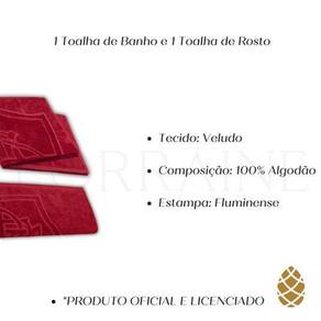 Feitas em tecido de veludo, as toalhas são extremamente macias e absorventes. Sua composição é 100% algodão, proporcionando um toque suave na pele. A estampa fluminense em cor vermelha traz um toque de estilo e personalidade ao kit.