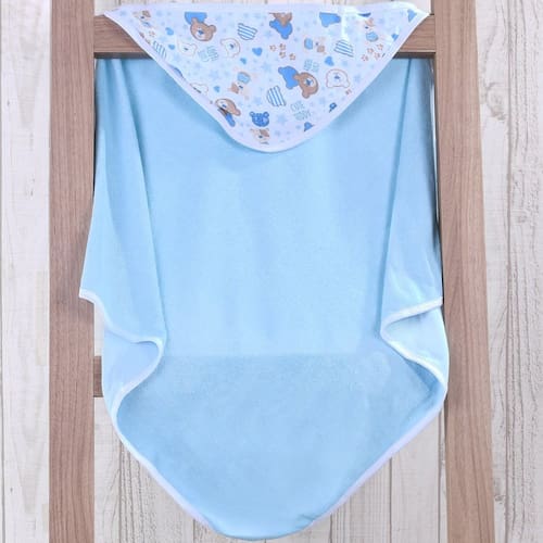 Toalha Capuz Bebê 70x70 Toque Aveludado Super Macia Ursinho Azul -