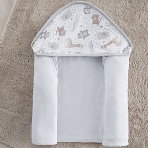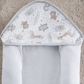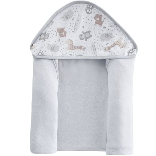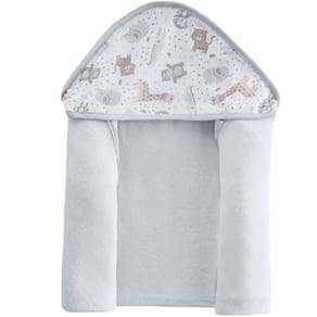 Toalha Capuz Bebê 70x70cm Malha Atoalhada Zoo Cinza - Gramatura 230g/m², 85% Algodão, 15% Poliéster, Malha Atoalhada, Capuz Estampado