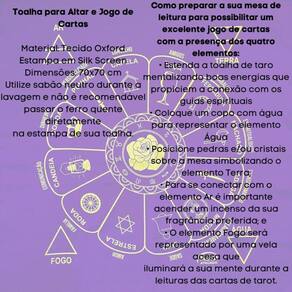 A Toalha Tecido Jogo de Cartas Cigana da Bialluz são ótimas para te auxiliar durante o jogo de cartas, por ser um elemento que proporciona alta elevação enérgica. Você também pode usar para decorar seu altar, com certeza ficara ainda mais lindo e com muita energia positiva. Nossa toalha possui altíssima qualidade na impressão com pontos de brilho e é confeccionada em tecido oxford que não amassa e tem longa durabilidade.