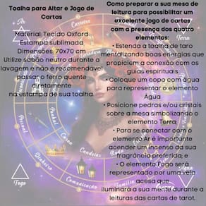 A Toalha de Tecido Cigana Leitura Tarot Baralho 70 x 70 cm da Bialluz, é ótima para te auxiliar durante o jogo de cartas, por ser um elemento que proporciona alta elevação enérgica. Você também pode usar para decorar seu altar, com certeza ficara ainda mais lindo e com muita energia positiva. Nossa toalha possui altíssima qualidade na impressão com pontos de brilho e é confeccionada em tecido oxford que não amassa e tem longa durabilidade.