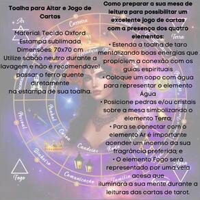 A Toalha de Tecido Cigana Leitura Tarot Baralho 70 x 70 cm da Bialluz, é ótima para te auxiliar durante o jogo de cartas, por ser um elemento que proporciona alta elevação enérgica. Você também pode usar para decorar seu altar, com certeza ficara ainda mais lindo e com muita energia positiva. Nossa toalha possui altíssima qualidade na impressão com pontos de brilho e é confeccionada em tecido oxford que não amassa e tem longa durabilidade.
