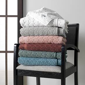 Da linha de Toalhas Premium Altenburg, o modelo Diamond está disponível nos tamanhos rosto, banho e banhão, com 6 opções de cores: branco, cinza, rosa, vermelho, verde e azul.